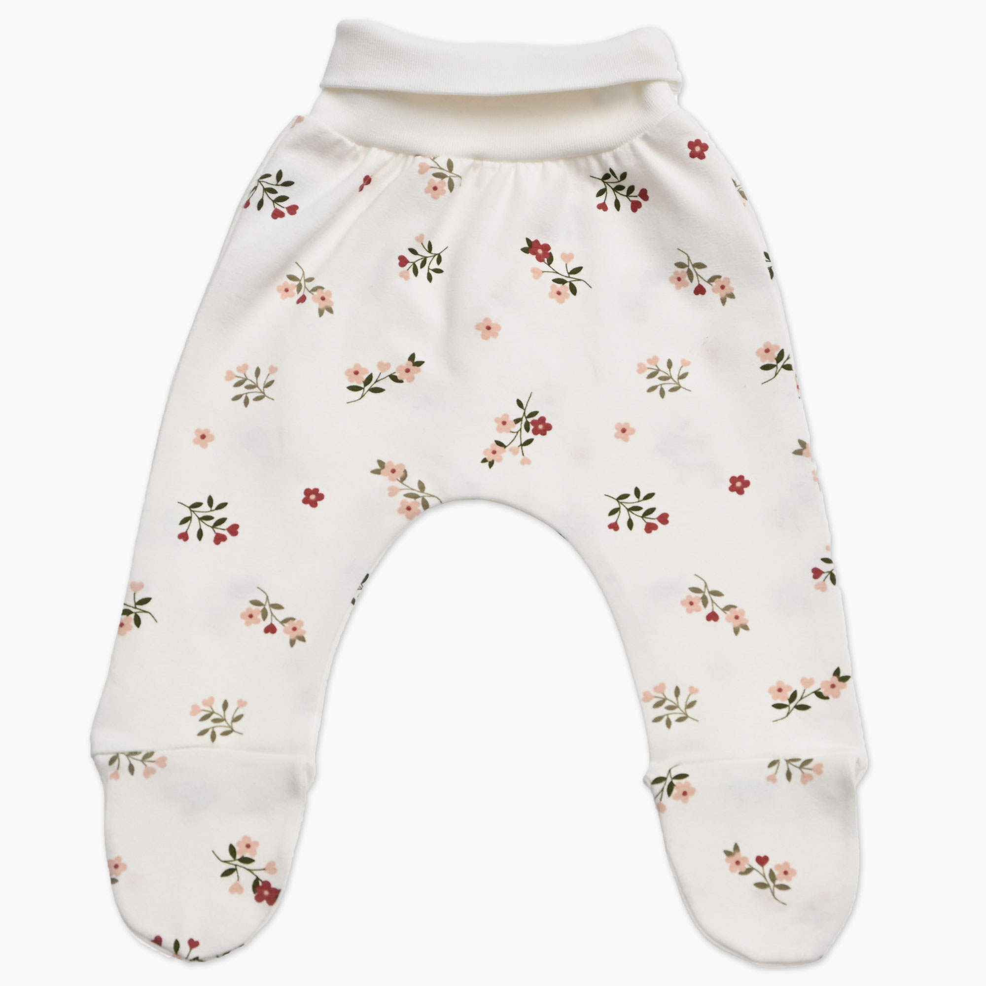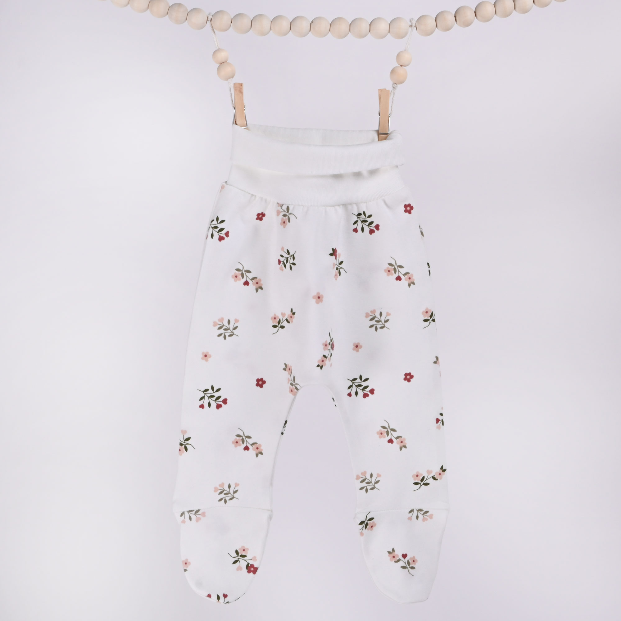 Žabice so v smetana barvi s prisrčnim tiskom rožic, ki dodaja igriv in ljubeč detajl. Elastičen patent v pasu zagotavlja enostavno oblačenje, dobro prileganje in udobje brez tiščanja. Vsak kos je ročno izdelan v majhni seriji, z mislijo na varnost, prijaznost otroku in vsakdanjo uporabnost.