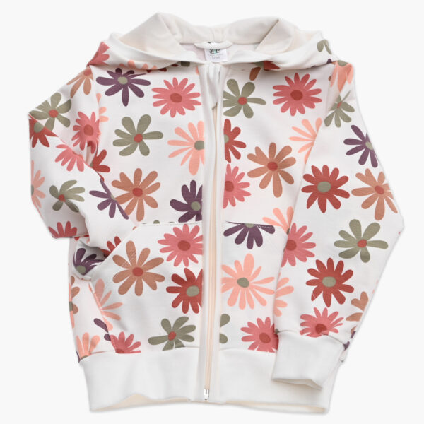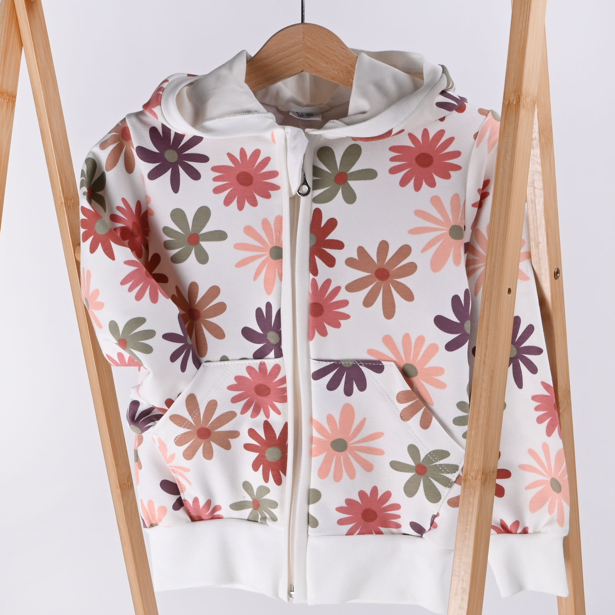 Otroška jopica za punčko v nežni smetana barvi s tiskom različnih cvetov je ustvarjena za udobne in igrive dni, ko se prepletata toplina in brezčasen videz. Nežen cvetlični potisk doda jopici mehak, dekliški značaj, ki se lepo poda tako vsakdanjim kot bolj posebnim priložnostim.