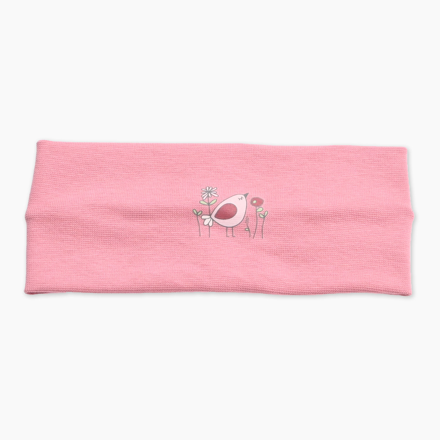 Otroški trak za zaščito ušes v roza barvi s tiskom ptička med rožicami