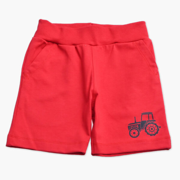 Otroške kratke hlače za fanta v rdeči barvi s traktorjem