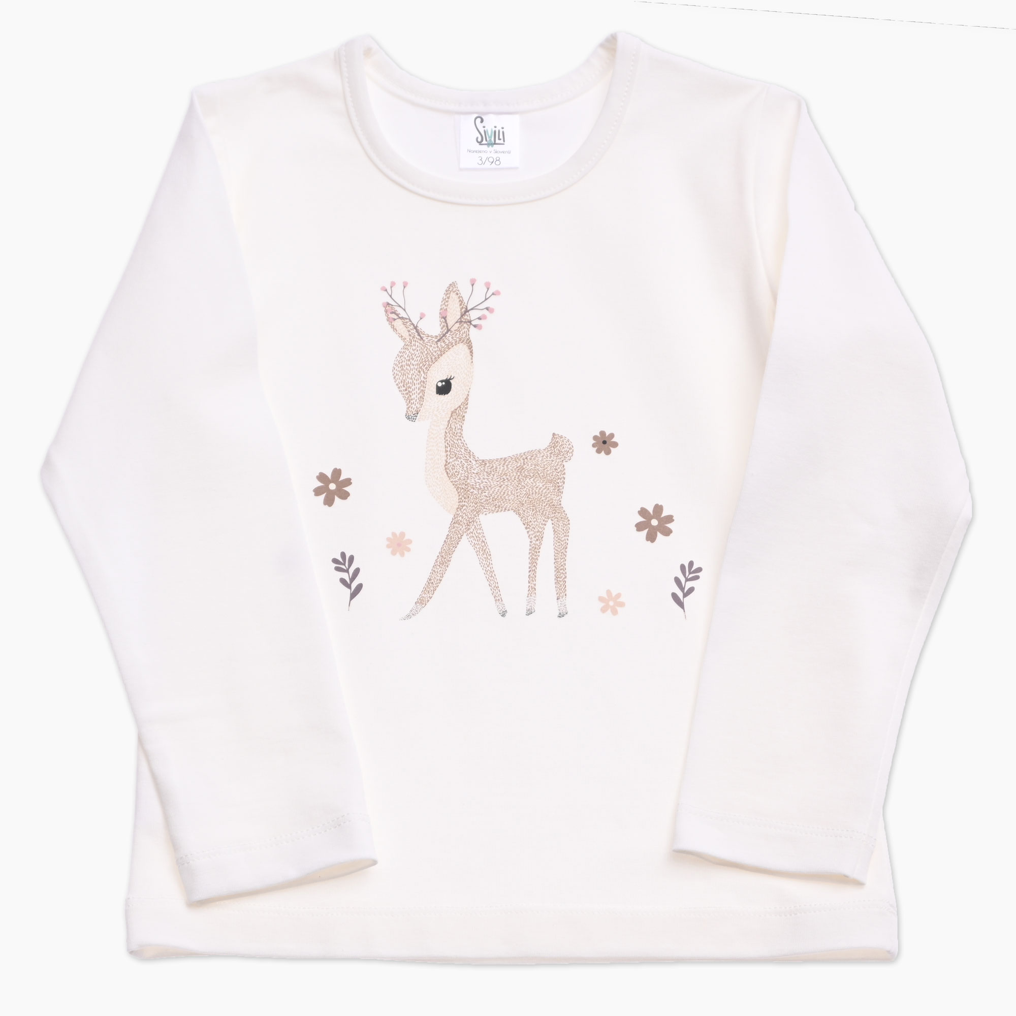 Otroška majica za punčko v smetana barvi in tiskom srnice