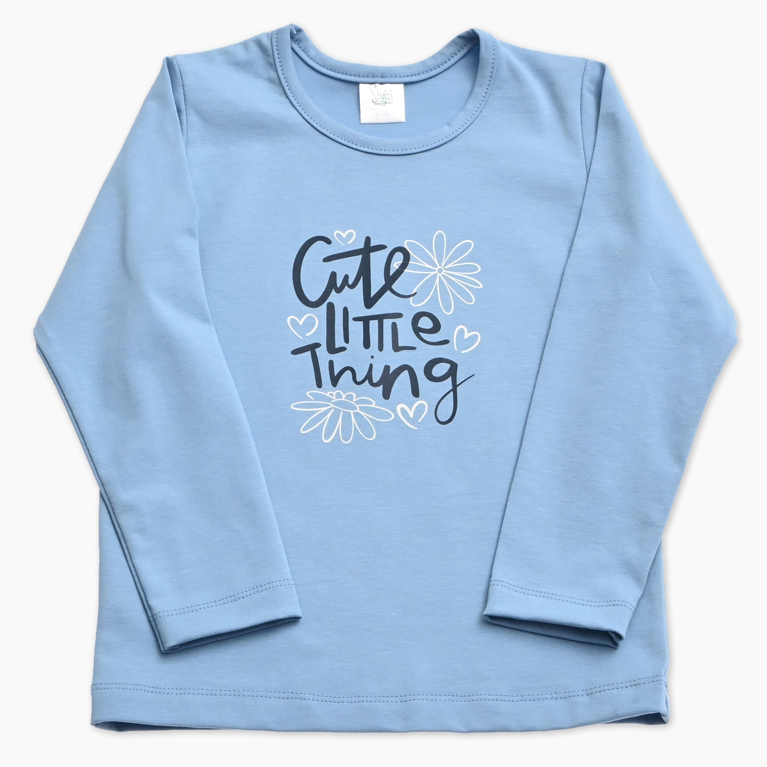Otroška majica za punčko v svetlo modri barvi in napisom CUTE LITTLE THING