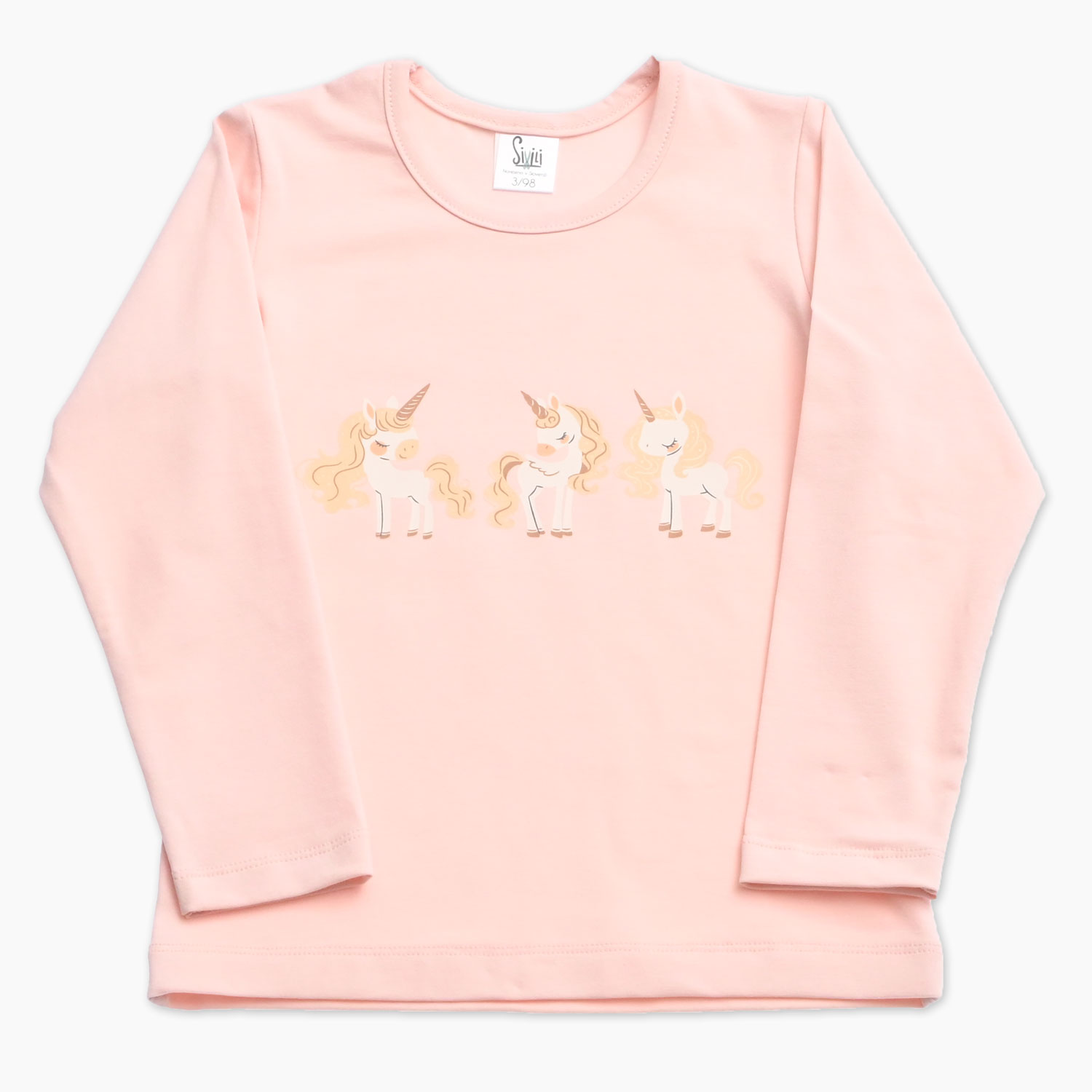 Otroška majica za punčko v svetlo roza barvi in tiskom Unicorna