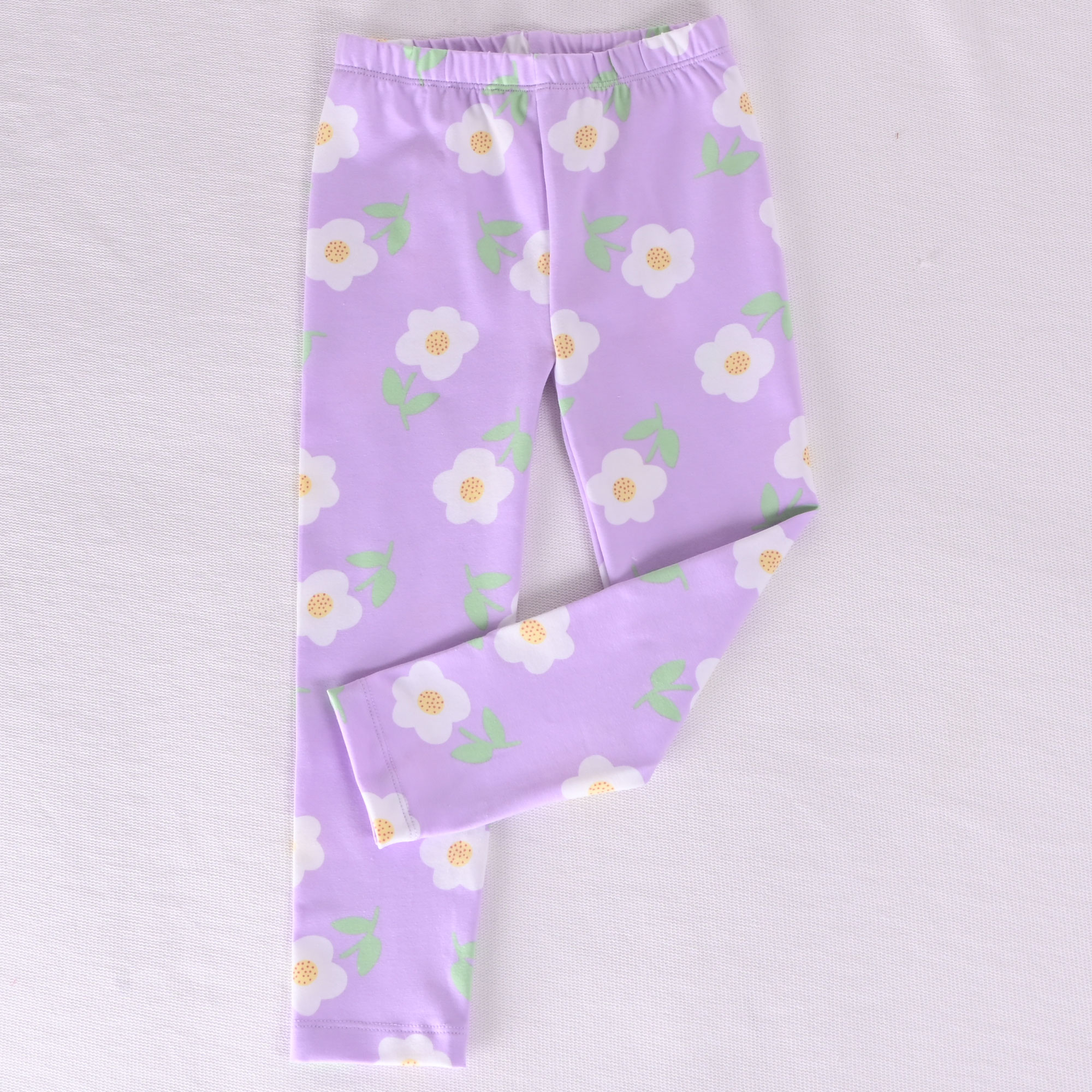 Otroške pajkice v lila barvi s tiskom marjetic za popestritev otroške garderobe. Narejeno v Sloveniji.