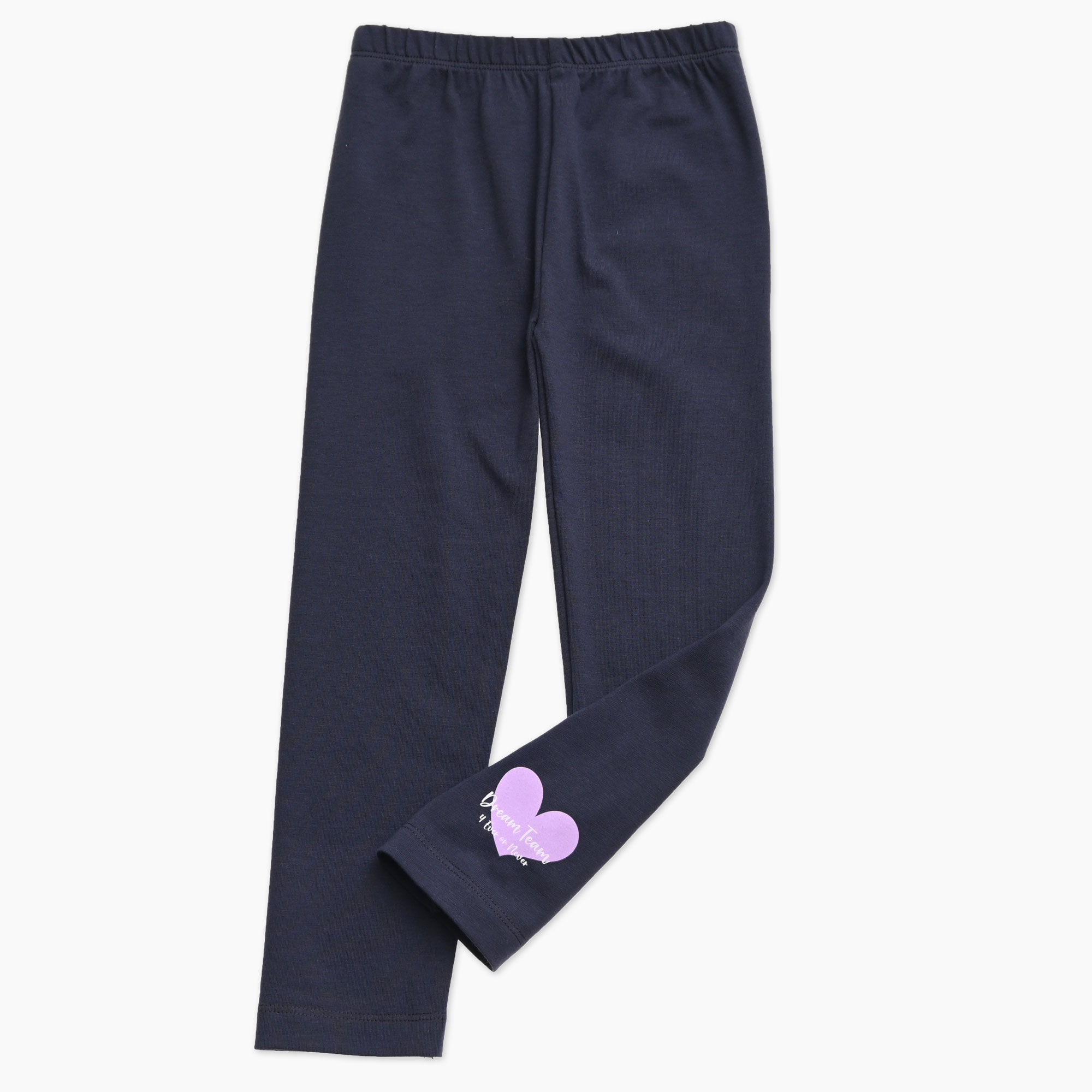 Otroške pajkice za punčko v temno sivi enobarvni tkanini so nežna in vsestranska izbira za vsakodnevne kombinacije. Minimalističen videz dopolnjuje tisk srčka na hlačnici, ki doda igriv in dekliški poudarek.