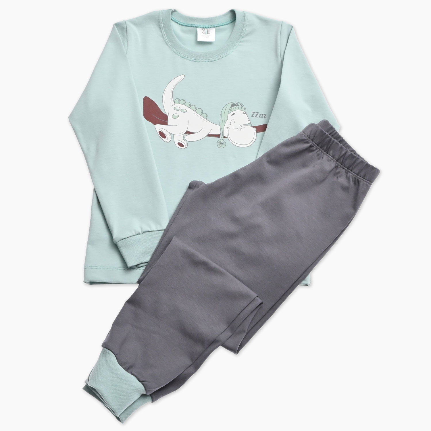 Mint in siva otroška pižama za fanta z dinozavrom