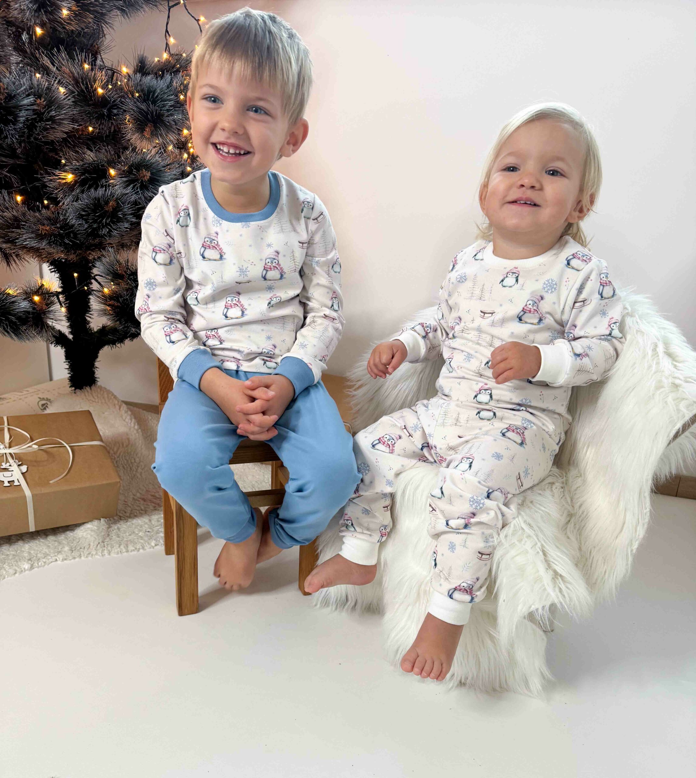 Otroška praznična pižama s pingvinčki – slovenski bombažni izdelek