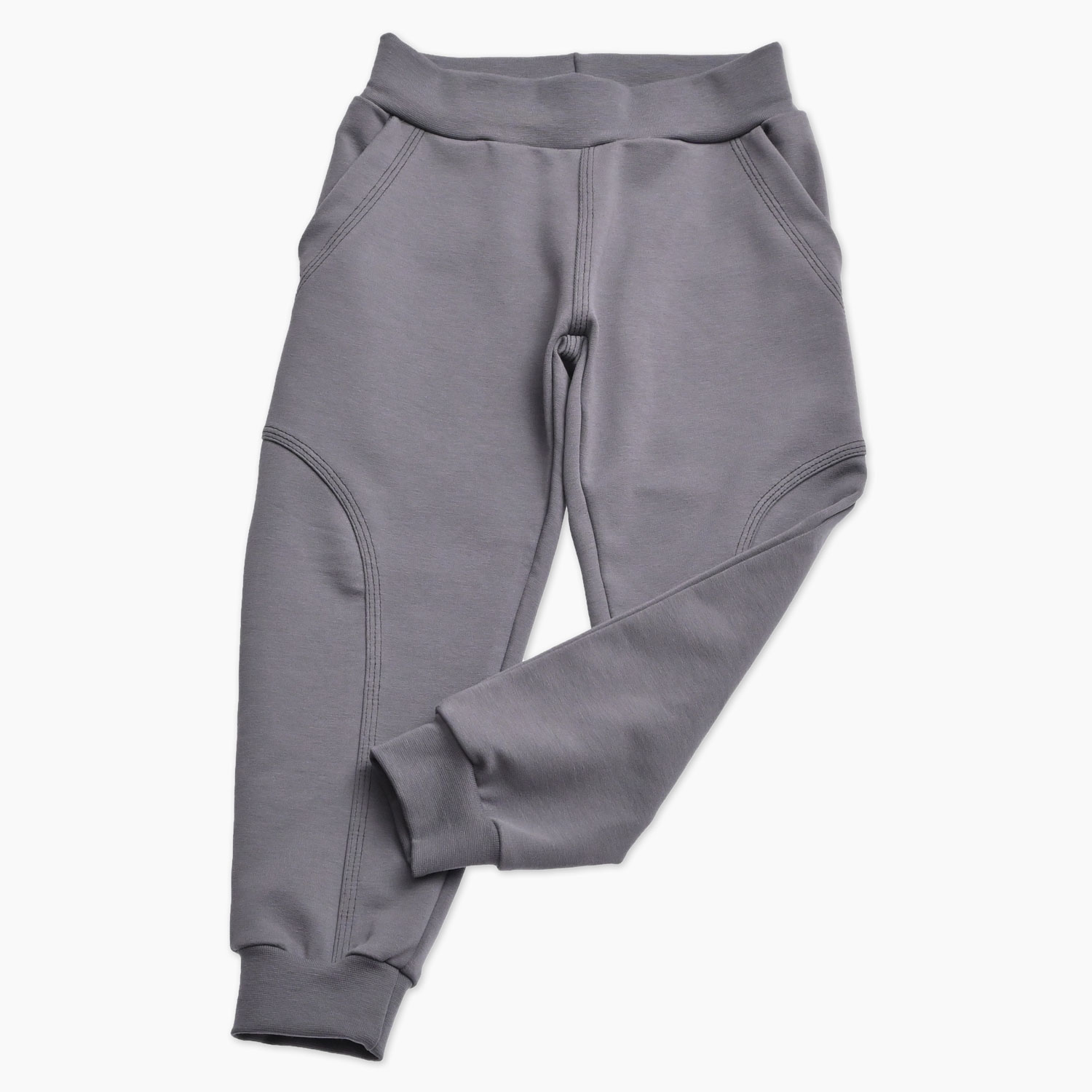 Otroške hlače z okrasnimi šivi v sivi barvi z notranjima žepoma