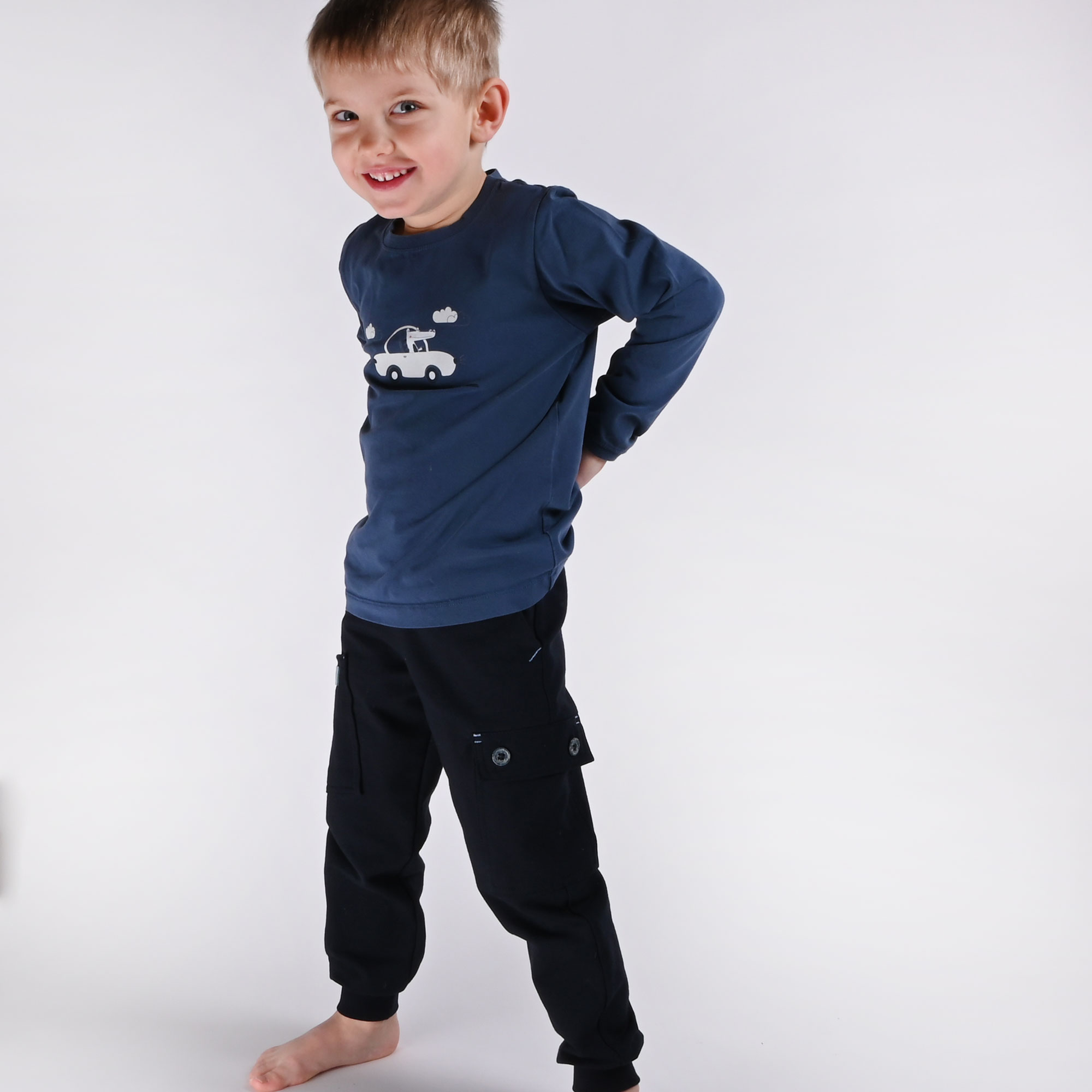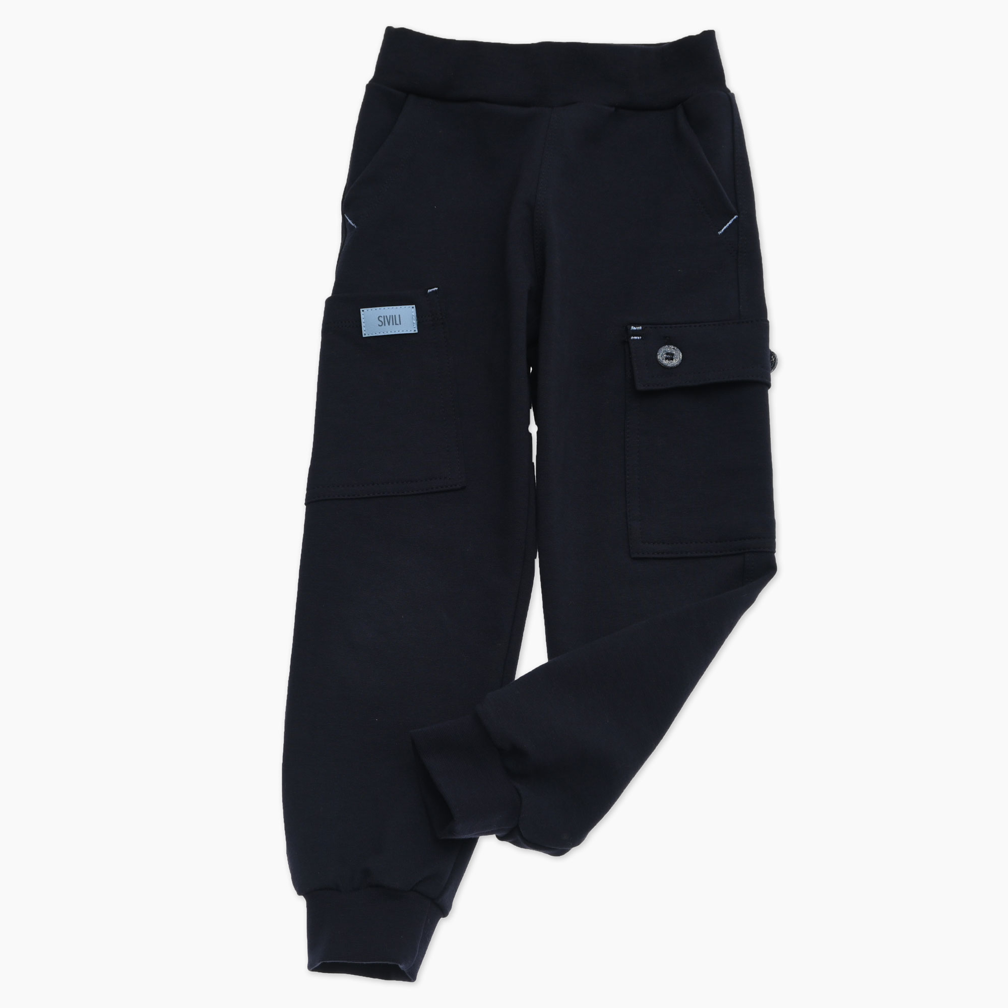Otroške hlače za fanta v temno modri barvi z dvema notranjima in stranskima žepoma