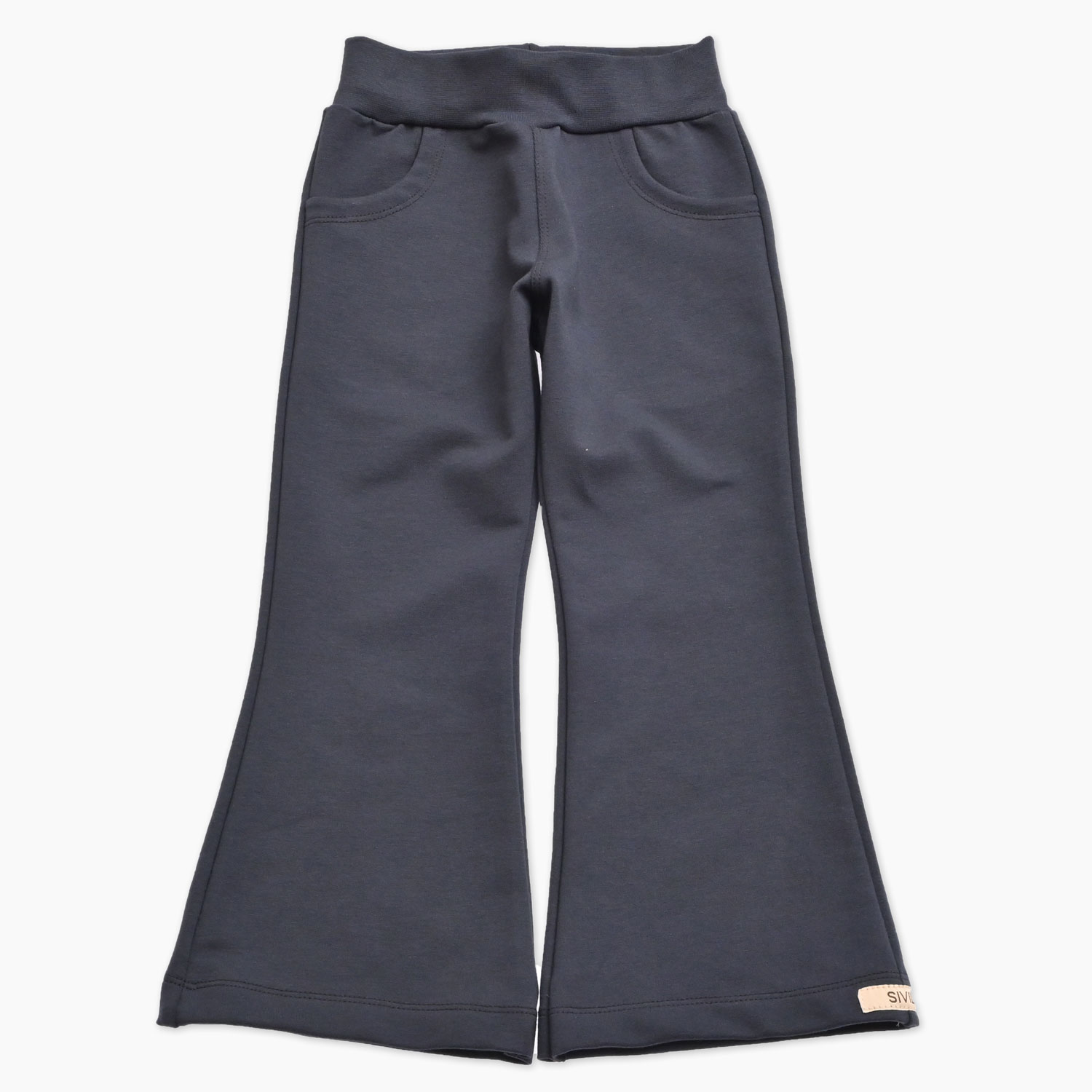 Udobne in modne hlače na zvonec v klasični temno sivi barvi, zasnovane posebej za otroke. Izdelane so iz mehke in prijetne tkanine, ki omogoča svobodno gibanje. V pasu je elastika, ki zagotovi popolno prileganje in enostavno oblačenje.