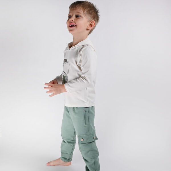 Zelene otroške hlače za fanta so zasnovane za udobno gibanje, vsakodnevne aktivnosti in brezskrbne dni. Izdelane so iz organskega bombaža, ki je prijazen do občutljive kože in zagotavlja udobje ter trajnost.
