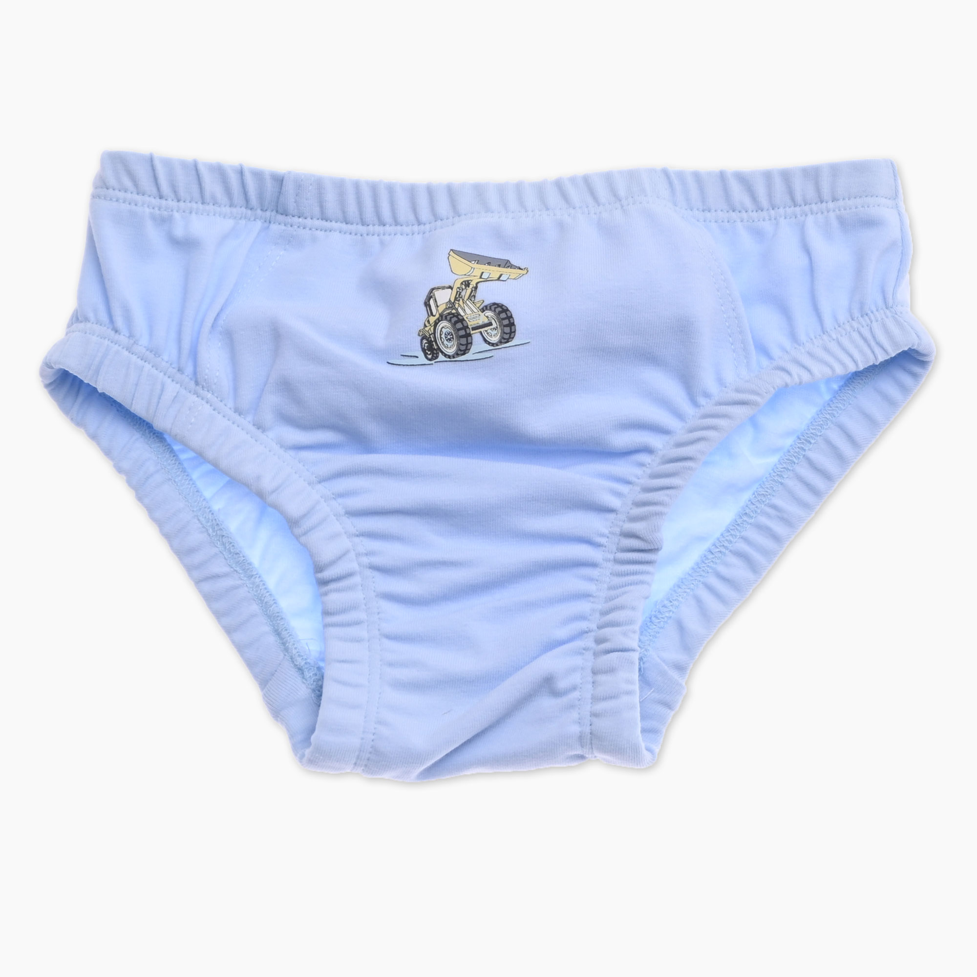 Otroške spodnje hlače za fanta z motivom nakladača v svetlo modri barvi. Mehke, udobne in raztegljive iz organskega bombaža. Narejeno v Sloveniji.