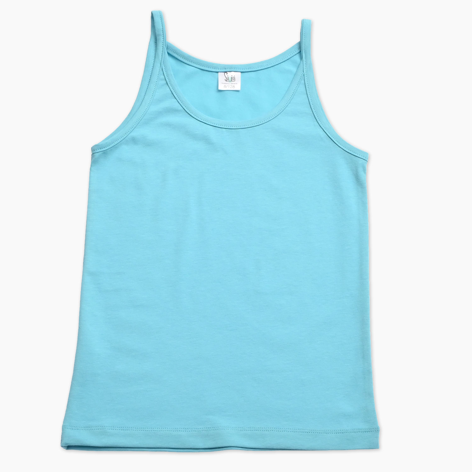 Mehak in udoben kos garderobe – otroška spodnja majica za punčke v klasični turkizni barvi je idealna za vsakodnevno nošenje ali kot osnovna plast pod oblačili. Ozke naramnice omogočajo preprost oprijem in udobno prileganje, hkrati pa zagotavljajo lahkotnost in svobodo gibanja.